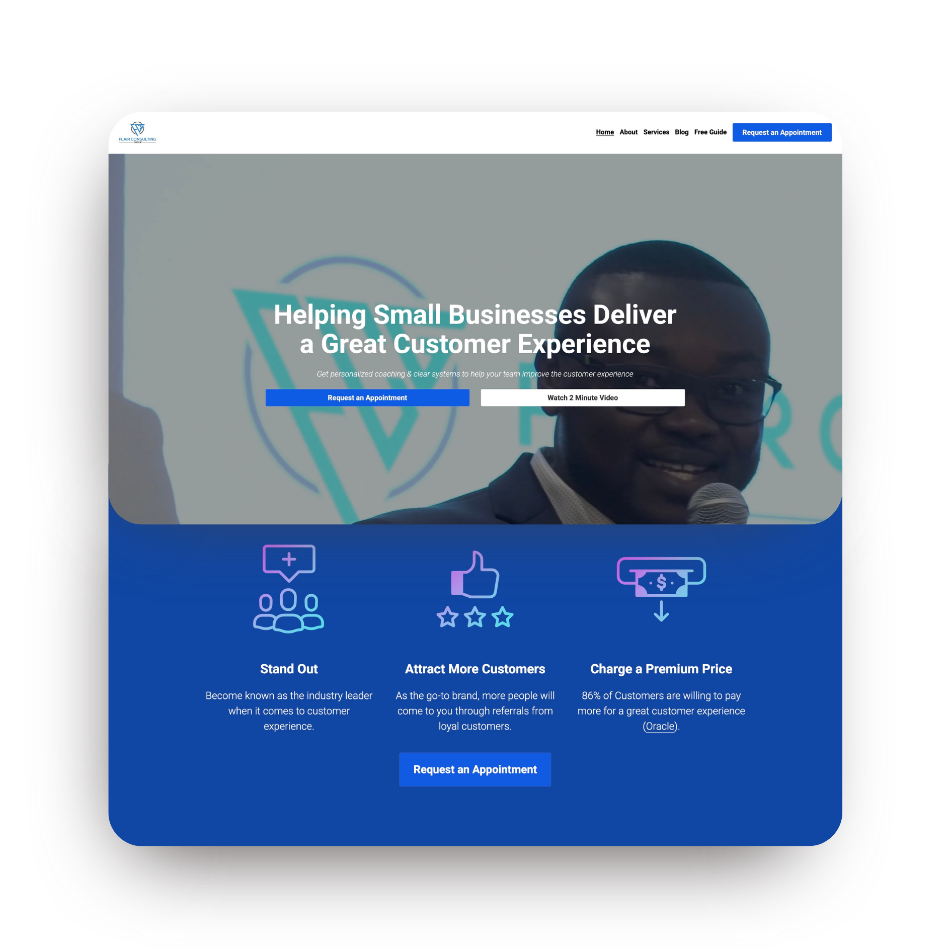 In addition to the website redesign, we worked closely with Francis Flair, CEO of Flair Consulting Group, providing digital marketing strategy, email templates for converting prospects, and accountability support.